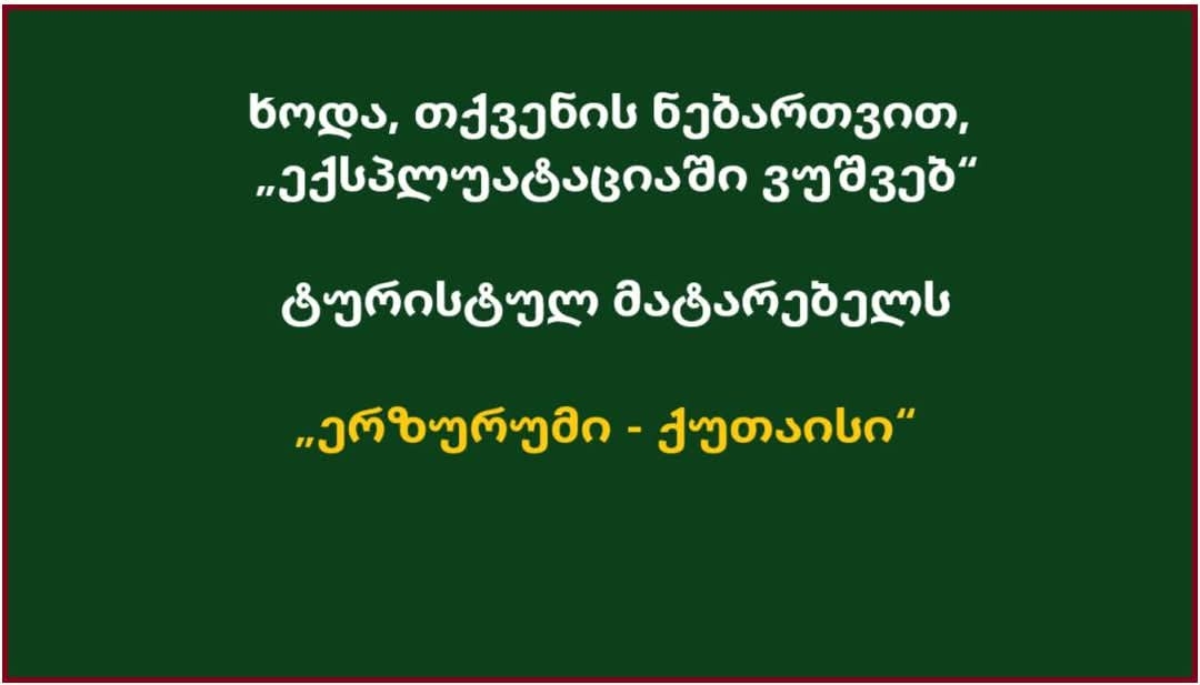 ხოდა, თქვენის ნებართვით, „ექსპლუატაციაში ვუშვებ“ ტურისტულ მატარებელს „ერზურუმი - ქუთაისი“, რომ ერთმანეთთან დავაკავშირო დავით ნარინის მამის მშობლიური ქალაქი, სადაც მისი დის, თამარ დედოფლის საფლავია განლაგებული, და დავით ნარინის სატახტო ქალაქი. მაგრამ... მაგრამ ამისთვის საჭიროა „საქართველოს რკინიგზის“ სამგზავრო მატარებელი ტექნიკურად თავსებადი იყოს იმ ახალ ქსელთან, რომლის შექმნაც თურქეთის მთავრობამ დაგეგმა „მსოფლიო ბანკის“ დახმარებით, ხოლო „თურქეთის რკინიგზების“ სამგზავრო მატარებელი - საქართველოს სარკინიგზო ქსელთან... ყოველივე ეს კი კოლოსალურ ძალისხმევას საჭიროებს, რომელიც შორს, ძალიან შორსაა საქართველოს სარკინიგზო სექტორის დღევანდელი „ბოსების“ აზროვნებისგან, პროფესიონალიზმისგან, მიდგომისგან და ა.შ.