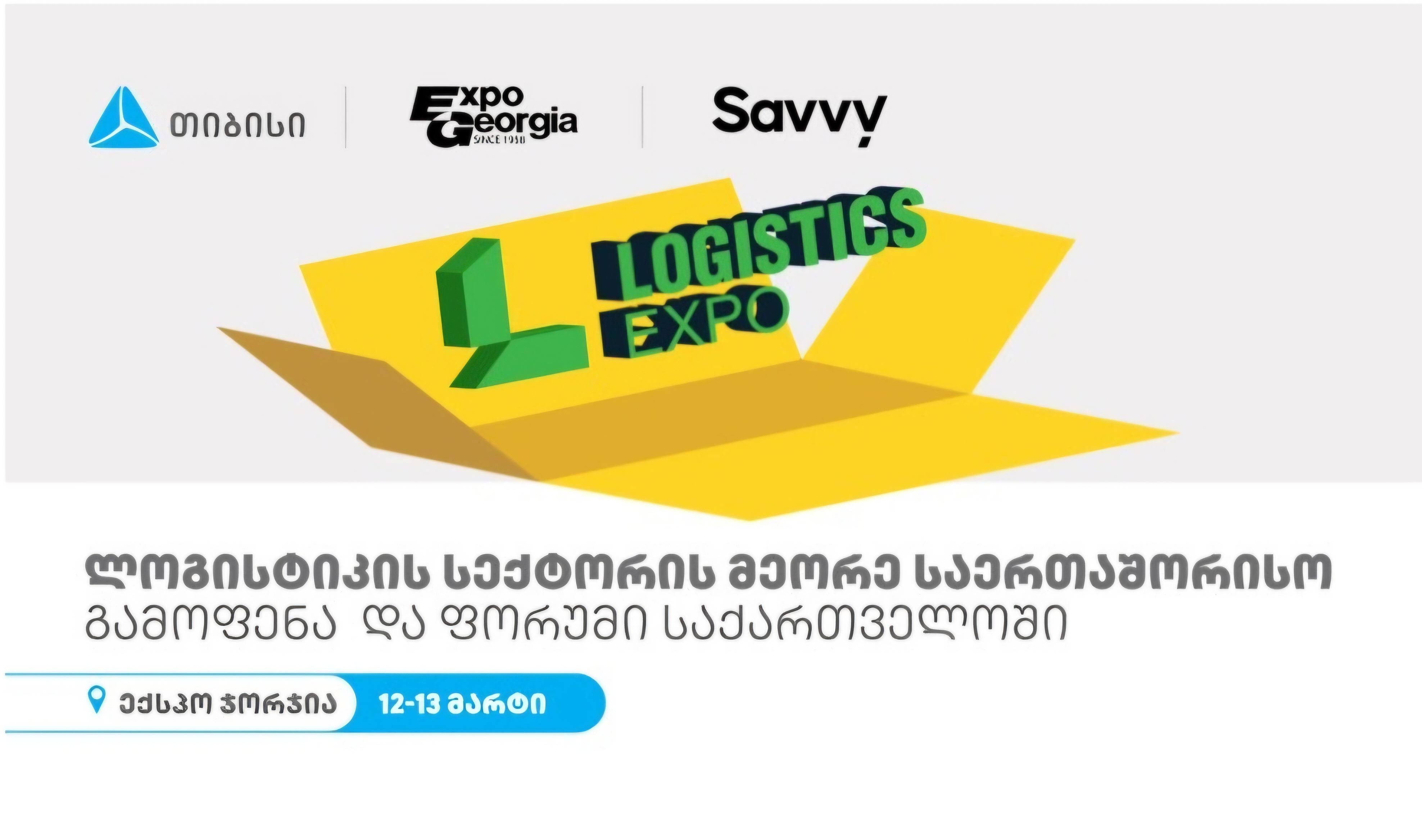 12-13 მარტს ექსპო-ჯორჯია ტრანსპორტისა და ლოგისტიკის საერთაშორისო გამოფენას უმასპინძლებს. თიბისის მხარდაჭერით, ღონისძიება უკვე მეორედ ჩატარდება, კონფერენციის ორგანიზატორები „ექსპო-ჯორჯია“ და საკონსულტაციო კომპანია Savvy არიან. საერთაშორისო გამოფენისა და ფორუმის მიზანი, სტრატეგიულად მნიშვნელოვანი სექტორის მხარდაჭერა და განვითარებაა. ღონისძიება გააერთიანებს ადგილობრივ და საერთაშორისო ლოგისტიკურ კომპანიებს, პორტებისა და რკინიგზის წარმომადგენლებს, საჰაერო გადამზიდავებს, საინვესტიციო და საფინანსო ინსტიტუტებს, ასევე იმპორტ–ექსპორტზე ორიენტირებულ ბიზნესებს.