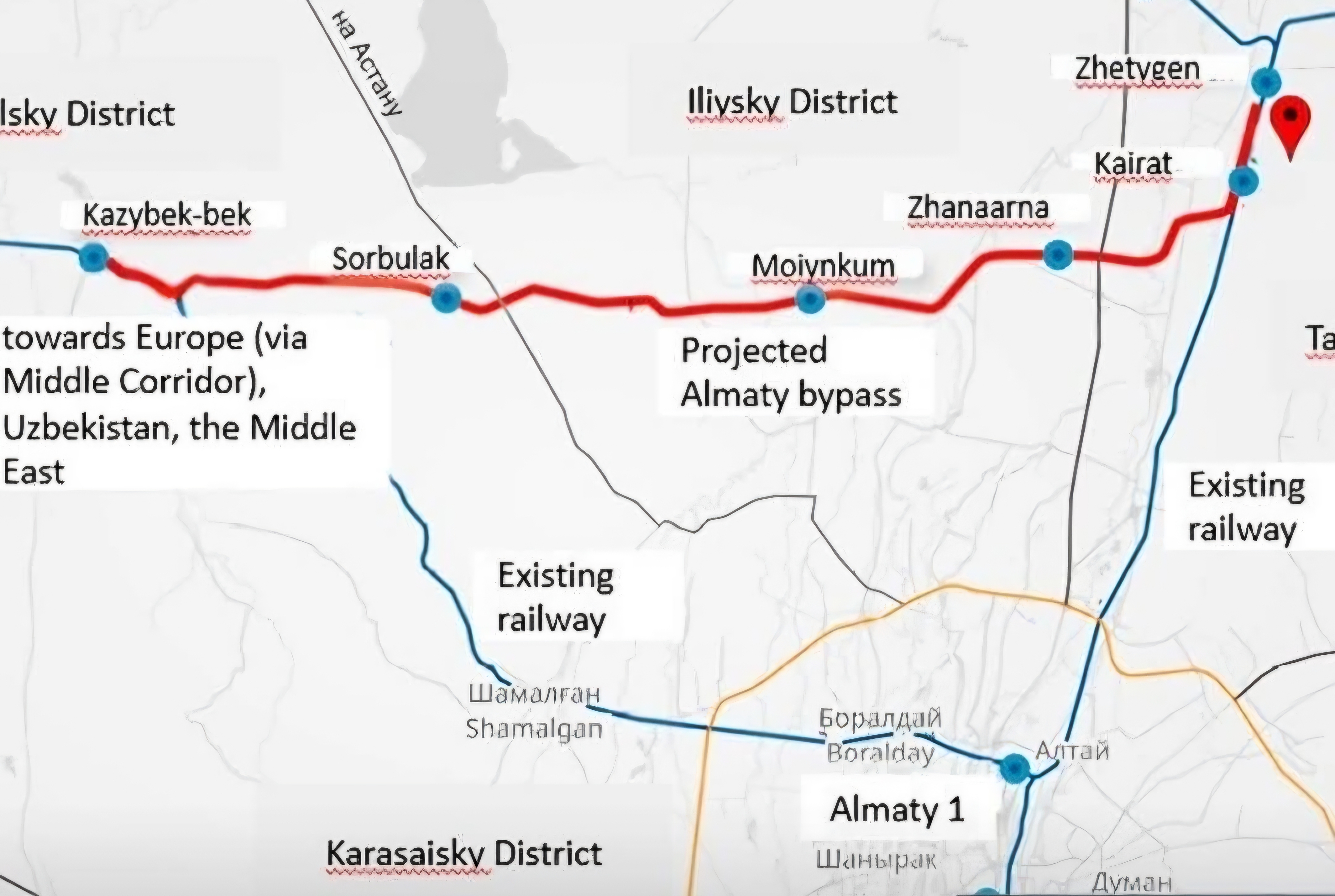 დიოპმა აღნიშნა, რომ თანხები გამოიყოფა ალმატის გარშემო 130 კილომეტრიანი ელექტროფიცირებული რკინიგზის შემოვლითი გზის მშენებლობისთვის. შემოვლითი გზა, სავარაუდოდ, ალმატის გარშემო საცობებს 40 პროცენტზე მეტით შეამცირებს, მიწოდების დრო კი, 24 საათამდე შეამცირდება და გაუმჯობესდება ტვირთების ნაკადები ტრანსკასპიური სატრანსპორტო დერეფნის (TCTC) გასწვრივ, რომელიც ასევე ცნობილია როგორც შუა დერეფანი - სახმელეთო გზა, რომელიც ჩინეთსა და ცენტრალურ აზიას კასპიის ზღვასთან და შემდეგ ევროპასთან აკავშირებს.