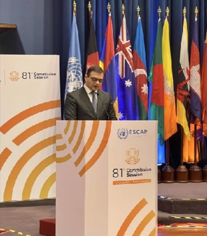 21 აპრილს, ბანგკოკში მიმდინარე გაეროს აზიისა და წყნარი ოკეანის ეკონომიკური და სოციალური კომისიის (UNESCAP) 81-ე სესიის ფარგლებში, სომხეთის რესპუბლიკის საგარეო საქმეთა მინისტრის მოადგილემ რობერტ აბისოღომონიანმა მონაწილეობა მიიღო და სიტყვით გამოვიდა ზოგად დებატში სახელწოდებით “აქტუალური და განვითარებული პოლიტიკის საკითხები ინკლუზიური და მდგრადი განვითარებისათვის აზიისა და წყნარი ოკიანის რეგიონში”.