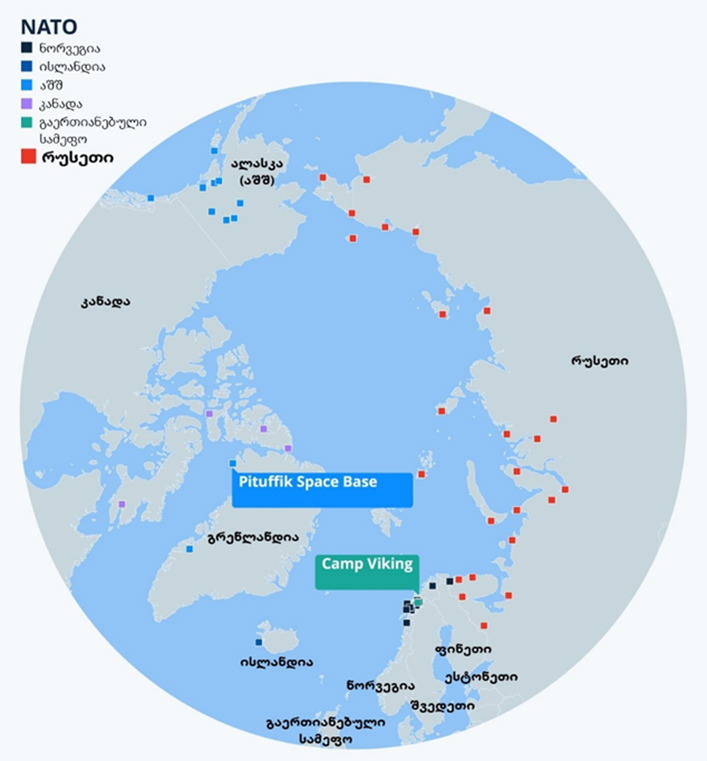 რუსეთის უკრაინაში შეჭრამ არქტიკის გეოპოლიტიკა მნიშვნელოვნად შეცვალა. ომმა გავლენა იქონია ორი ნეიტრალური ქვეყნის უსაფრთხოების გარანტიებზე. კერძოდ, რუსეთის ქმედებების შედეგად, აქტიკული ქვეყნები ფინეთი და შვედეთი ჩრდილოატლანტიკური ალიანსის წევრები გახდნენ. ამით ნატომაც გაზარდა თავისი გავლენა არქტიკაზე. აშშ-ის თავდაცვის სამინისტრო ამბობს, რომ ის აკვირდება განვითარებულ მოვლენებს და აუმჯობესებს სათვალთვალო და ადრეული გაფრთხილების სისტემებს უზარმაზარ რეგიონში, რათა „უზრუნველყოს არქტიკა არ გახდეს სტრატეგიული ბრმა ტერიტორია“. Foreign Policy-ის მიერ გამოქვეყნებული მონაცემები გვიჩვენებს, რომ ევროპაში ნორვეგიას აქვს 13 არქტიკული ბაზა, მათ შორის ახალი დანამატი, Camp Viking, ბრიტანეთის სამეფო საზღვაო ქვეითთა კომანდოს საწვრთნელი მოედანი. რუკაზე ჩანს, რომ აშშ-ს აქვს ცხრა ბაზა ალასკაში, გარდა გრენლანდიისა და ისლანდიის ბაზებისა. მას შემდეგ რაც აშშ-ს პრეზიდენტმა დონალდ ტრამპმა კუნძულ გრენლანდიის ყიდვის სურვილი გამოთქვა, ვაშინგტონმა განაცხადა, რომ არ აპირებს იქ აშშ-ის ამჟამინდელი სამხედრო ბაზების გაზარდას.